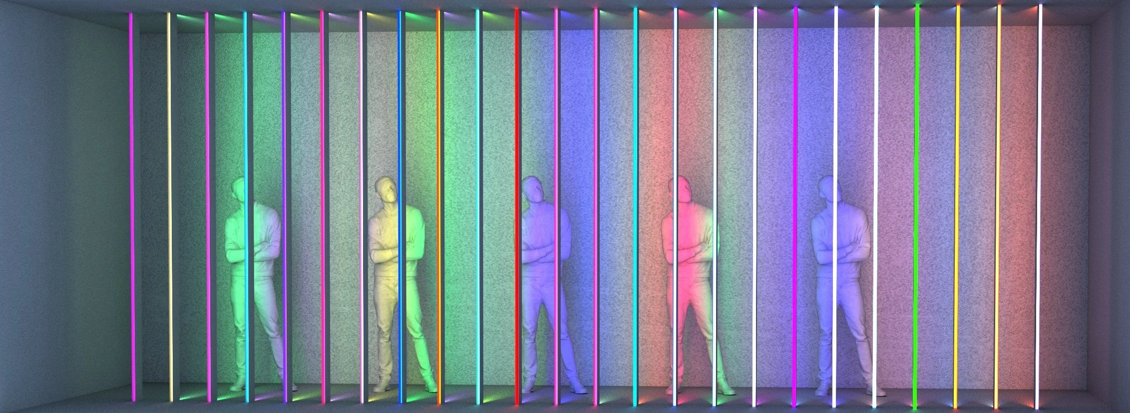 The concept for Colorful People is based on a line of thinking Kenzan first conceived and developed in 2017. First installed for the Portland Winter Light Festival, then formalized in a gallery show in Brooklyn, and later a permanent installation back again in Portland. Joseph’s talent as a creative technologist/artist is a welcome addition to bring an even higher level of color and control to the piece.